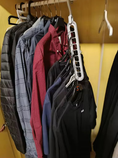 Med vårt multihängsystem kan du hänga flera klädesplagg på en och samma galge, vilket sparar upp till 80% garderobsutrymme. Du får plats med fler kläder utan att kompromissa med ordningen!