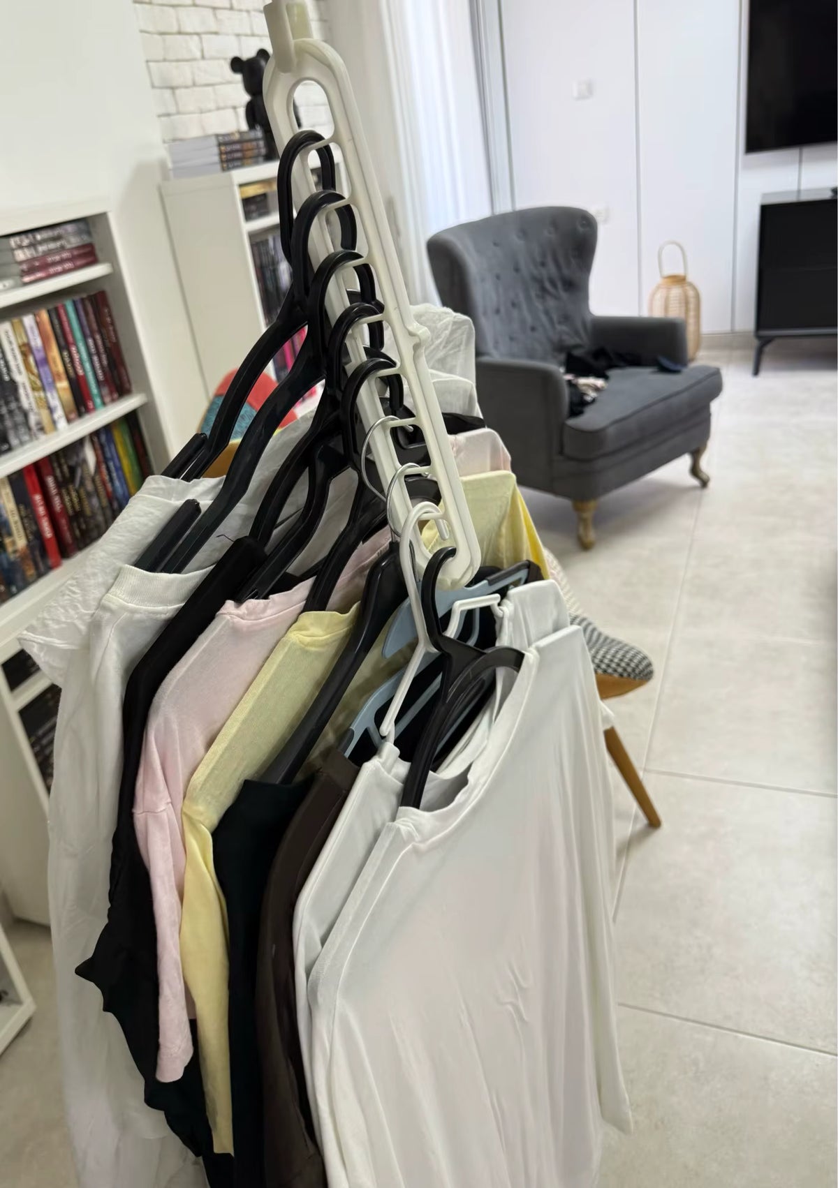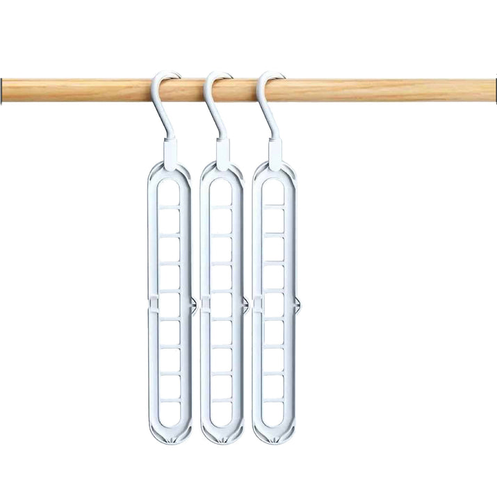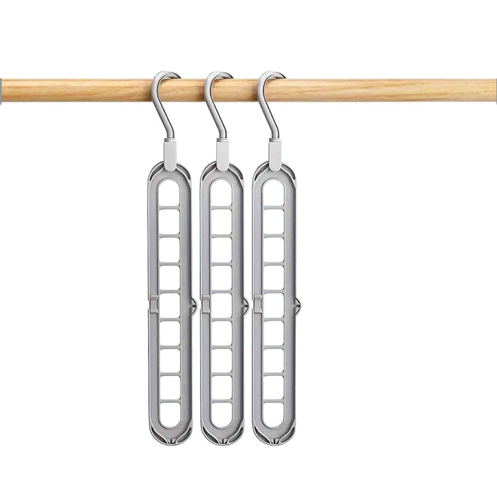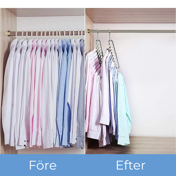 Med vårt multihängsystem kan du hänga upp till 9 klädesplagg på en och samma galge, vilket sparar upp till 80% garderobsutrymme. Du får plats med fler kläder utan att kompromissa med ordningen!